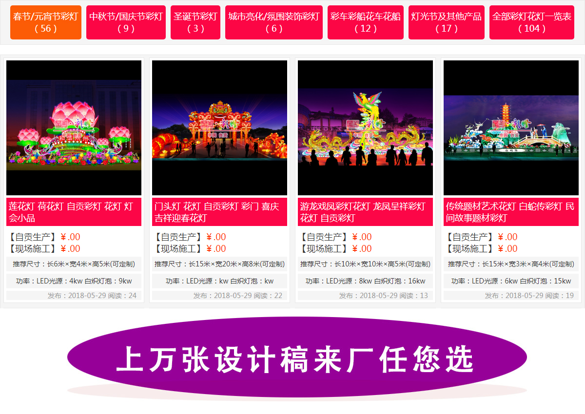(1)、城市亮化公司、照明公司、景觀公司在工程中需要加入一些自貢工藝的彩燈元素、立體造型燈元素的情形。