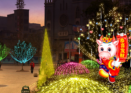 (4)、整體工程的彩燈數(shù)量多少也決定價格高低。尤其是制作團隊整體外出施工,燈組越多,價格越是相對便宜,建議30萬以下訂單在自貢本地制作,指派工人師傅上門安裝更加節(jié)省制作費用。