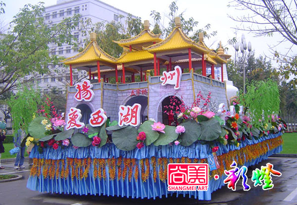 您的位置:尚美彩燈網(wǎng)站首頁 >>> 燈會制作 >>> 彩車彩船 >>> 《揚(yáng)州——瘦西湖》彩車花車
