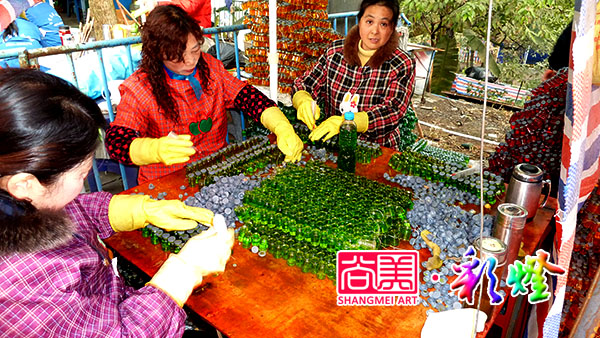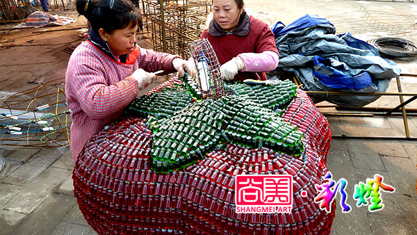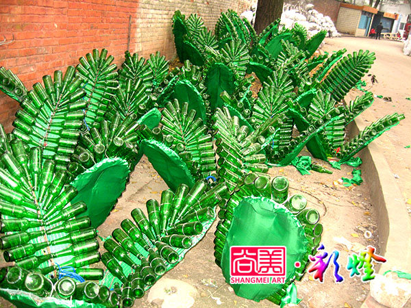瓶酒瓶燈倡導(dǎo)的也是一種環(huán)保理念,通過(guò)回收酒吧、酒店、餐廳的啤酒瓶,運(yùn)用特有的捆扎技術(shù)將啤酒瓶固定在特有的鋼絲骨架上,形成需要的圖案,可以通過(guò)內(nèi)透光,也可以通過(guò)外光光源將其藝術(shù)形式展現(xiàn)出來(lái)。