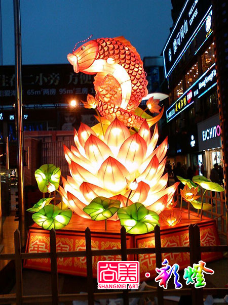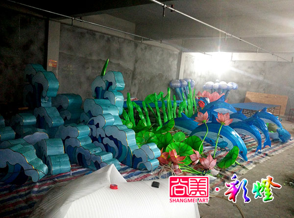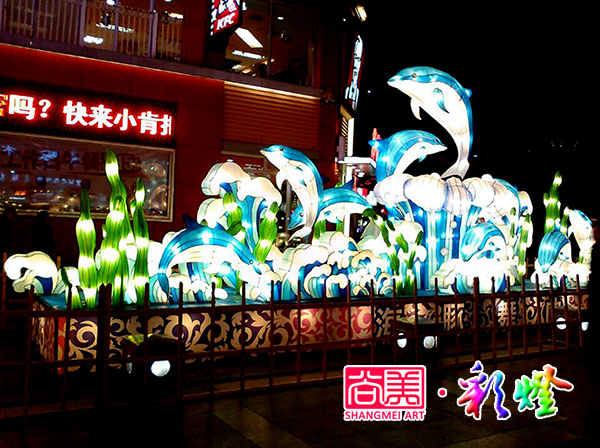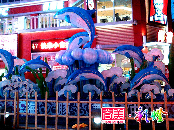經(jīng)過20天精心制作,自貢尚美彩燈公司制作完成了湖北黃岡奧康商業(yè)步行街訂制的《年年有余》《海豚舞曲》兩組彩燈的制作。