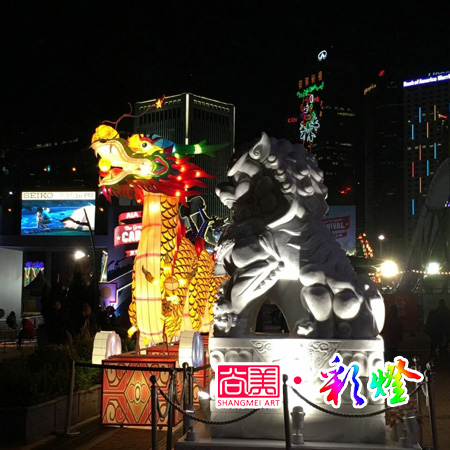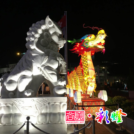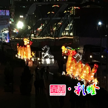 2016年12月底,香港客商再次向自貢尚美彩燈公司訂購(gòu)了兩條十二米長(zhǎng)龍。經(jīng)過25天細(xì)致施工,再經(jīng)過近20天的長(zhǎng)途運(yùn)輸(含海關(guān)安檢),2016年1月25日,成功到達(dá)客商制定的安裝地點(diǎn),并于當(dāng)天晚上順利亮燈。亮燈效果引來了大批游客的觀看、拍照,頓時(shí)為游樂場(chǎng)增添了大量的人氣。
