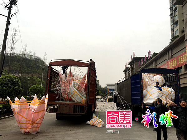 您的位置:尚美彩燈網(wǎng)站首頁 >>> 新聞動態(tài) >>> 公司新聞 >>> 公司交付廣西林先生定做的一批光雕花燈