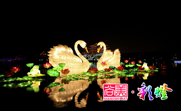 您的位置:尚美彩燈網(wǎng)站首頁 >>> 燈會制作 >>> 彩燈花燈 >>> 大型水上彩組天鵝心語