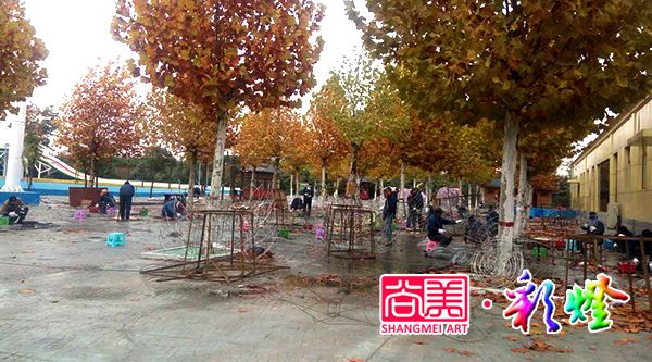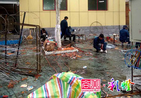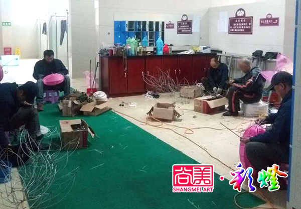 為了防止下雨耽誤工期,甲方為我們提供部分室內(nèi)制作場地。盡管還未入冬,但深秋的洛陽似乎還是稍有涼意,在室內(nèi)制作花燈始終要舒服些。