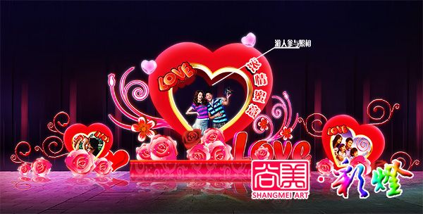 設(shè)計歐式燈會,我們就要去尋找歐式的文化內(nèi)涵的元素。比如表現(xiàn)圣誕節(jié)、萬圣節(jié)、情人節(jié)等這些文化元素的東西。如下圖的《濃情蜜意》