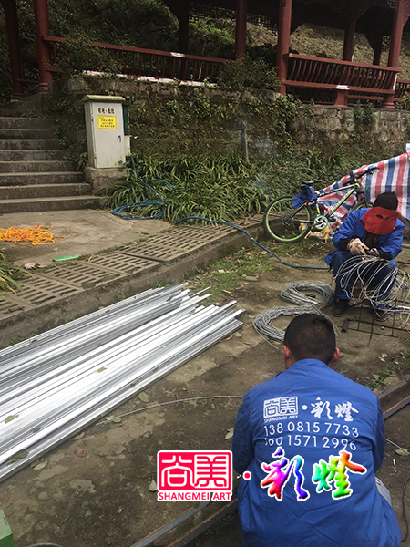 2017年,彭州市丹景山鎮(zhèn)丹景山景區(qū)在政府的主辦下,第三十三屆牡丹花節(jié)將于2017年3月25日開幕。本屆牡丹花節(jié)首次與自貢燈會(huì)相結(jié)合,努力打造一屆與眾不同的牡丹花節(jié)。自貢尚美文化藝術(shù)有限公司承接本屆牡丹花節(jié)燈會(huì)的彩燈制作項(xiàng)目。施工周期25天。目前,公司已經(jīng)組織施工隊(duì)伍進(jìn)場。