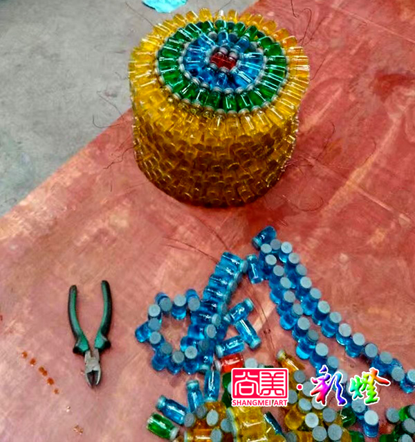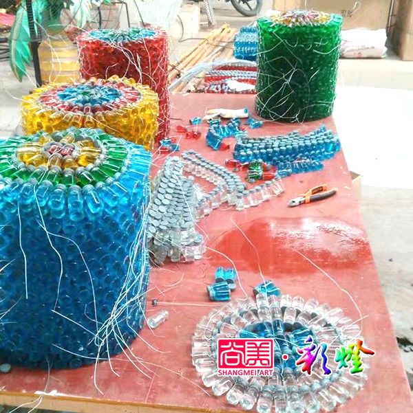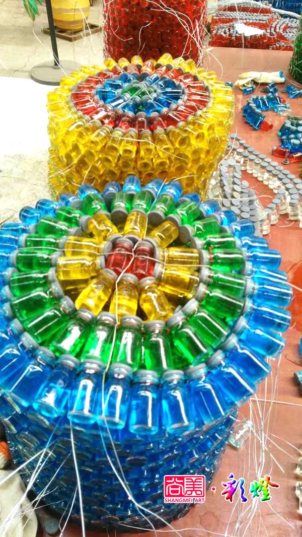 勤勞聰慧的自貢人,在彩燈花燈的制作技藝方面可以說是很獨到的。尤其是在材質選擇上,我們自貢的彩燈師傅可以說是腦洞大開,創(chuàng)意獨特。藥瓶彩燈就是自貢彩燈制作師傅們的智慧結晶。從藥瓶燈的燈組設計到藥瓶材質的準備再到工藝流程的最后的藝術效果實現,可以說自貢彩燈已經在燈彩產業(yè)里獨樹一幟。