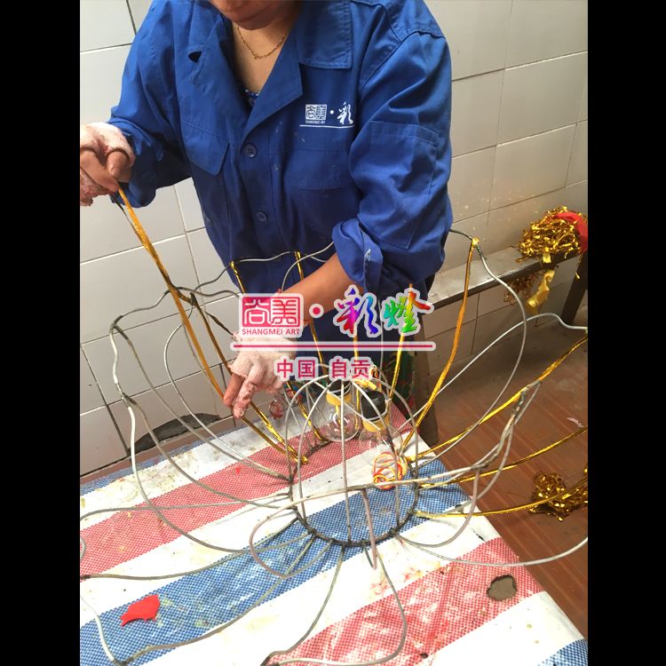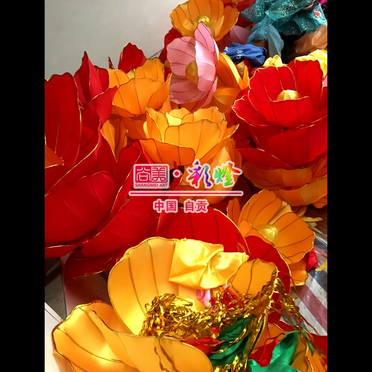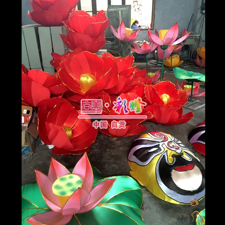花燈制作工藝:鋼結(jié)構(gòu)主體,絲架立體造型,綢布分色裱糊,內(nèi)透光,局部LED裝飾,美工藝術(shù)處理