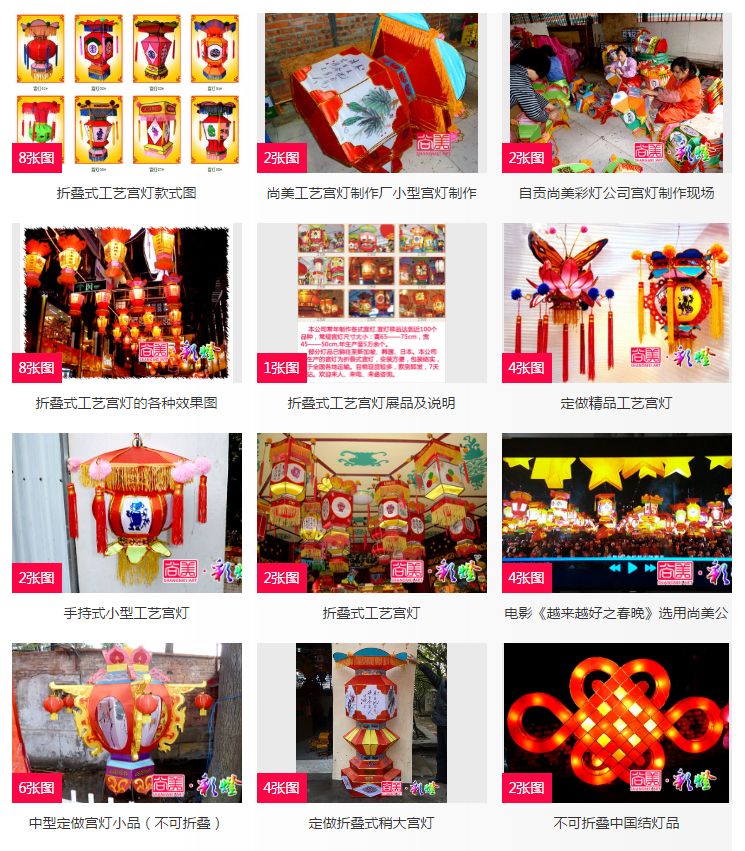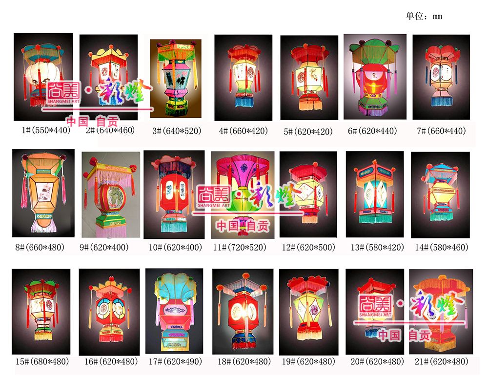 本公司常年制作各式工藝燈籠,宮燈,花燈,元宵燈籠,彩燈,宮燈樣品達(dá)到近50個(gè)品種,適用用于公園燈會(huì)展出,企業(yè)節(jié)慶裝飾,市政工程裝飾等。尺寸大?。焊?0—75cm,寬30-50cm,年生產(chǎn)量,10萬(wàn)余個(gè)。部分燈品已銷往至新加坡、韓國(guó)、日本、法國(guó)、美國(guó)、西班牙等。本公司所生產(chǎn)的宮燈為折疊式(組合式)宮燈,安裝方便,包裝結(jié)實(shí),利于全國(guó)各地運(yùn)輸。目前現(xiàn)貨較多,款到即發(fā),5-7天到站。歡迎來人、來電、來函咨詢。