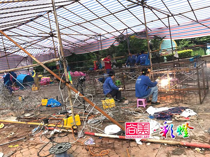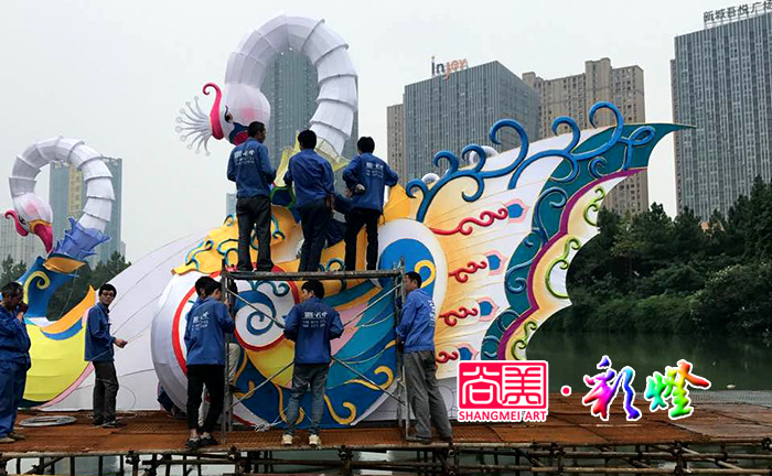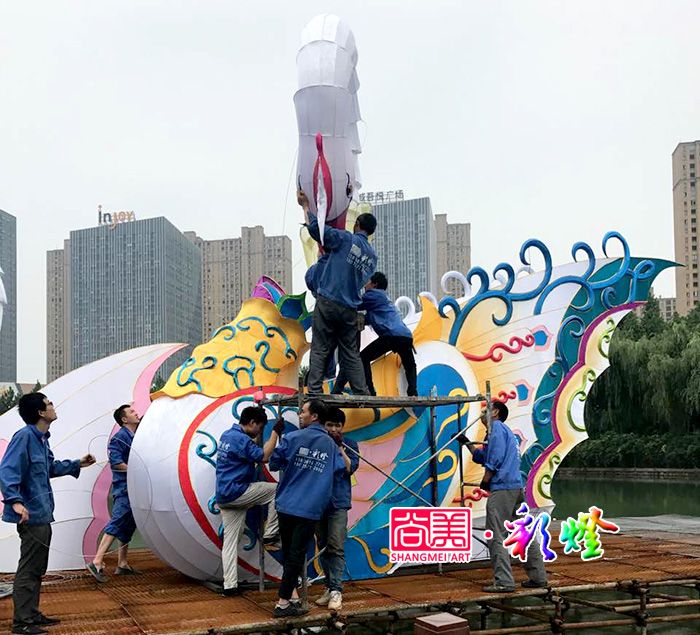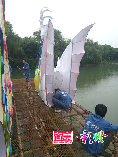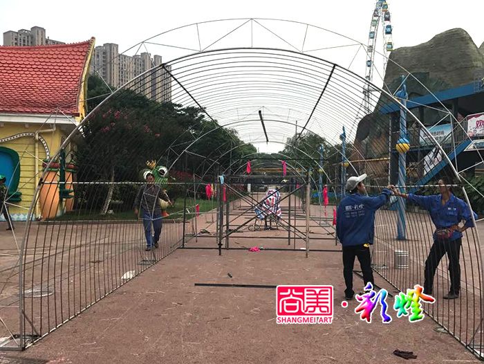 2017年6月,尚美彩燈團(tuán)隊(duì)在20天施工中,2017無(wú)錫張家港暨陽(yáng)湖夢(mèng)幻燈光美食啤酒節(jié)彩燈制作即將完工。