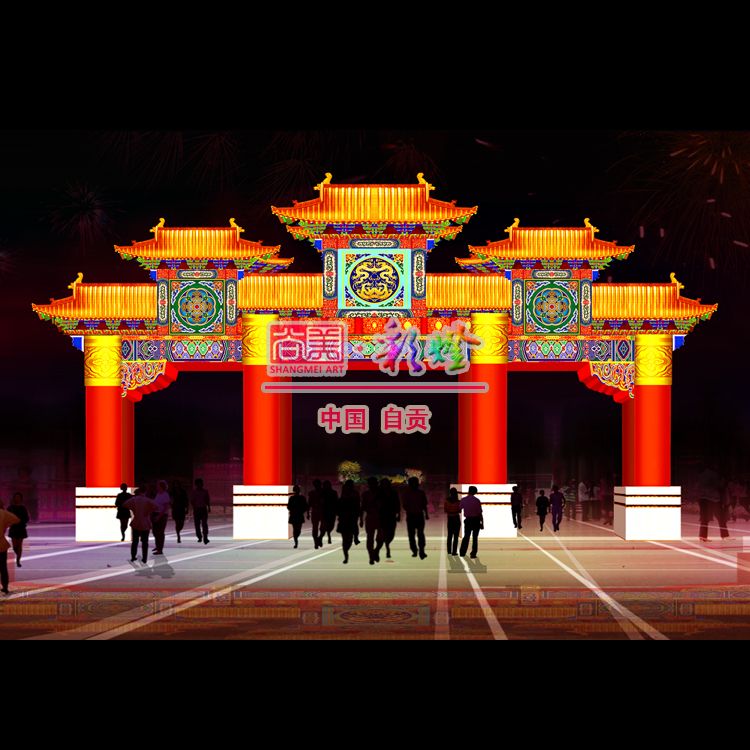 文章關(guān)鍵詞:中華門彩門,門樓,牌坊門燈,四川花燈,彩燈陸地?zé)艚M,主題門燈