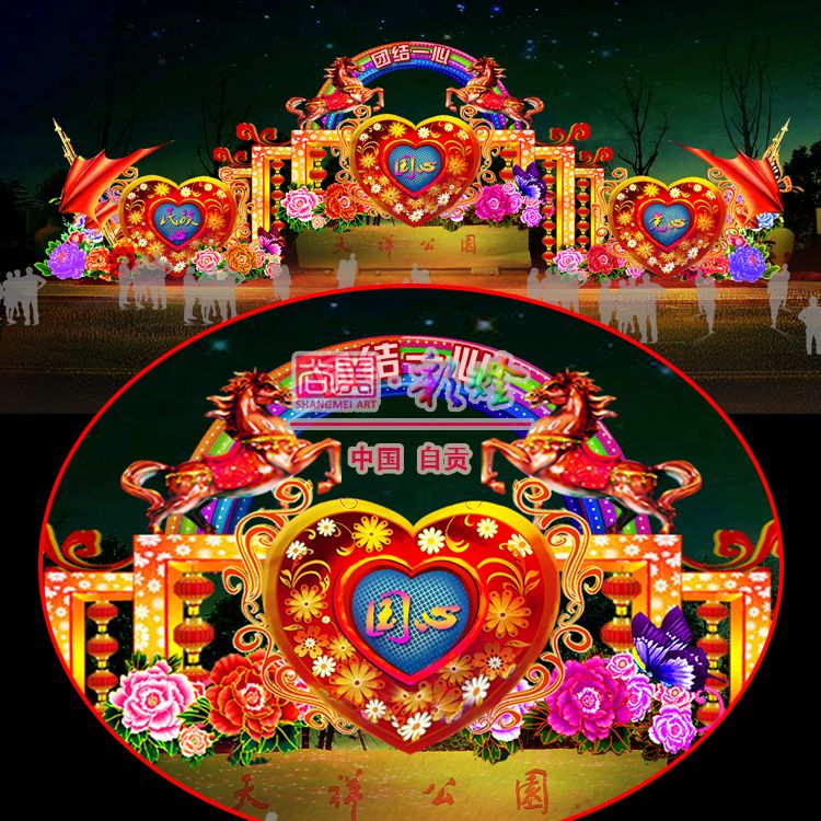 團結一心彩燈 馬到成功花燈 陸地燈組 彩燈 四川自貢彩燈 |