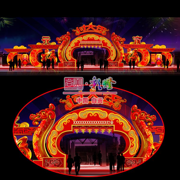 過大年主題門燈 彩門 門頭 彩燈 花燈 自貢彩燈 四川花燈 |