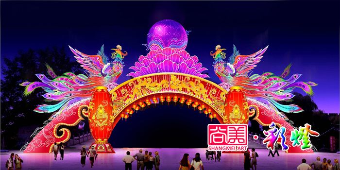 您的位置:尚美彩燈網(wǎng)站首頁 >>> 燈會制作 >>> 彩燈花燈 >>> 鳳凰于飛彩燈