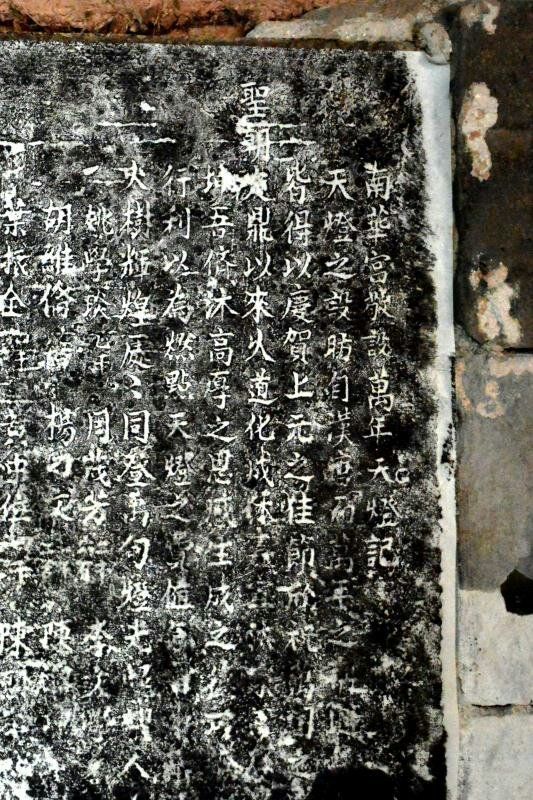 經(jīng)初步研究發(fā)現(xiàn),這塊石碑碑名為“南華宮敬設(shè)萬年天燈記”,第一句碑文記載:“天燈之設(shè)昉自漢唐而萬年之稱……”這塊石碑被標(biāo)注為7號碑,其高1.9米、寬1.1米。其余八塊石碑高度均在1.9米、寬度在0.75米至1.1米之間;此外,第4號石碑上也刻有關(guān)于當(dāng)年“天燈會”盛況的描述。