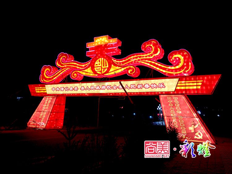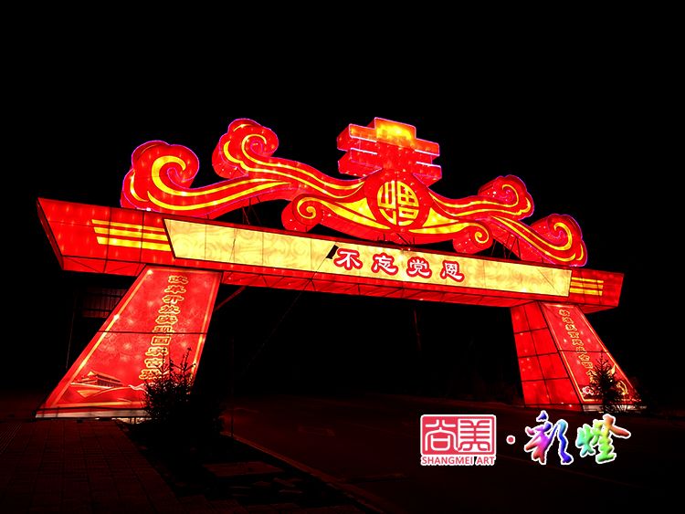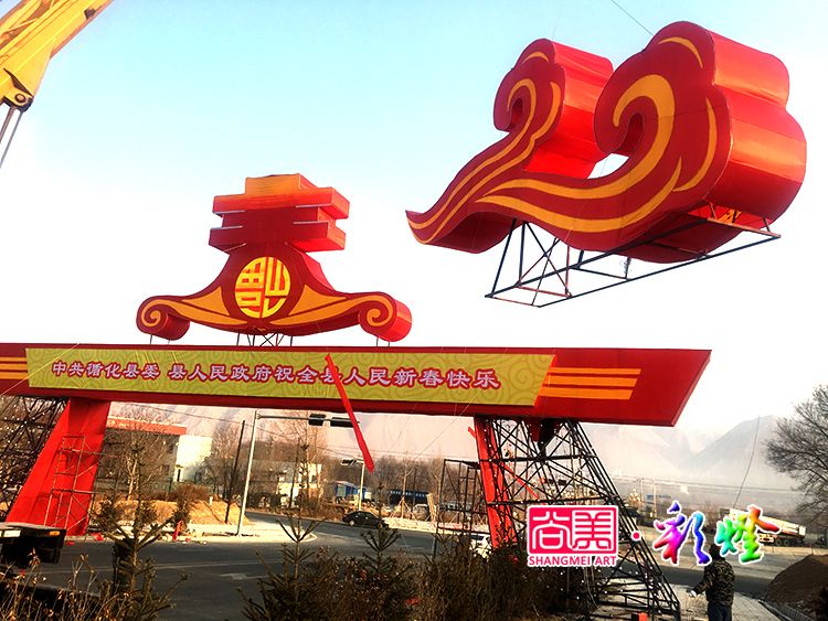 跨馬路的迎春彩門,是很多城市每年春節(jié)必做的花燈燈組。它是通往幸福、快樂的迎春大門,更象征著年節(jié)的紅紅火火,也是對(duì)遠(yuǎn)方客人和歸家親人們的隆重召喚,也有迎來送往之意。近年來,隨著年節(jié)花燈彩燈的大力推廣和被無數(shù)城市的接受,花燈彩門也做得越來越多,造型也各有千秋。但是對(duì)于橫跨馬路、過街天橋這樣的花燈彩門技術(shù)含量要求更高。效果上要追求大氣、喜慶、有看頭,實(shí)際制作中又要因地制宜,要有足夠的跨度空間容留來往的車輛通過,更要考慮的是安全風(fēng)險(xiǎn)。尤其是在北方的冬天更是要考慮狂風(fēng)肆虐的自然天氣,每組跨街大門或跨馬路大門都是對(duì)技術(shù)團(tuán)隊(duì)的一個(gè)大考驗(yàn),只有燈組展出結(jié)束后,才會(huì)松上一口氣。