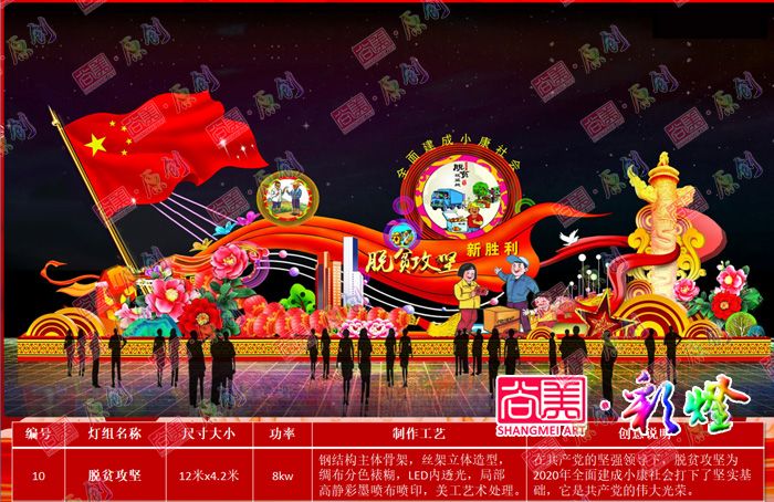 脫貧攻堅主題彩燈:在共產(chǎn)黨的堅強(qiáng)領(lǐng)導(dǎo)下,脫貧攻堅為2020年全面建成小康社會打下了堅實基礎(chǔ),它是共產(chǎn)黨的偉大光榮。