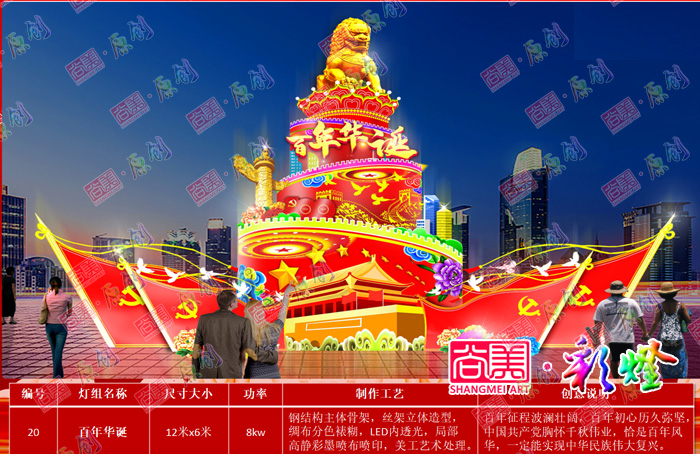 以下為自貢尚美彩燈公司傾力打造的建黨百年紅色主題燈會方案: