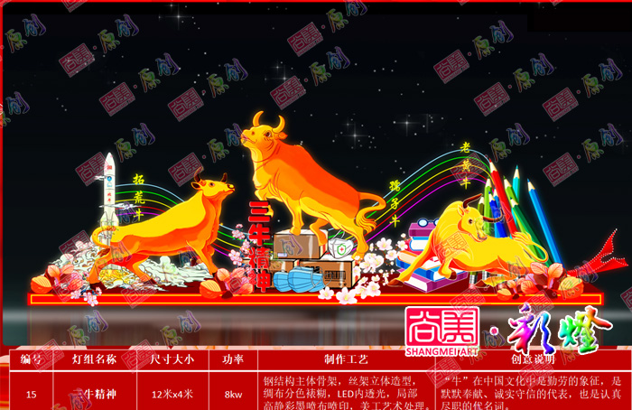 時代號角——三牛精神彩燈:“?!痹谥袊幕惺乔趧诘南笳?,是默默奉獻(xiàn)、誠實守信的代表,也是認(rèn)真盡職的代名詞。