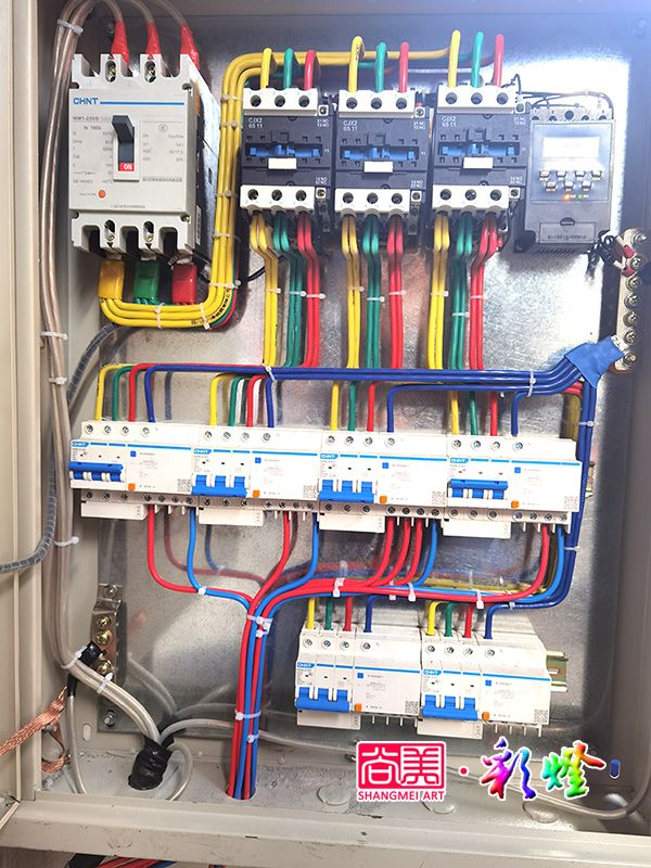 通常來說,燈會(huì)用電,從變壓器出來幾乎都是三相電源,配以三相動(dòng)力配電箱,然后根據(jù)各個(gè)燈組的用電功率估值再?zèng)Q定是分配三相電還是兩廂電。對(duì)于一些小功率的彩燈,一個(gè)兩廂配電箱,可以承載多組小型彩燈。有些耗電功率較大的彩燈幾乎單獨(dú)需要一個(gè)配電箱。一般來說,10個(gè)千瓦內(nèi)的彩燈用電采用兩相電源即可,10個(gè)千瓦以上的彩燈用電還是用三相電源居多。
